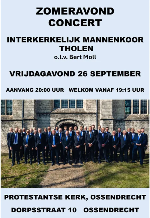Vrijdagavond 26 september treed het Thools mannenkoor op in de Protestantse kerk in Ossendrecht.