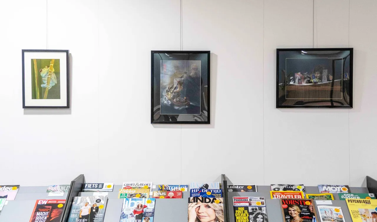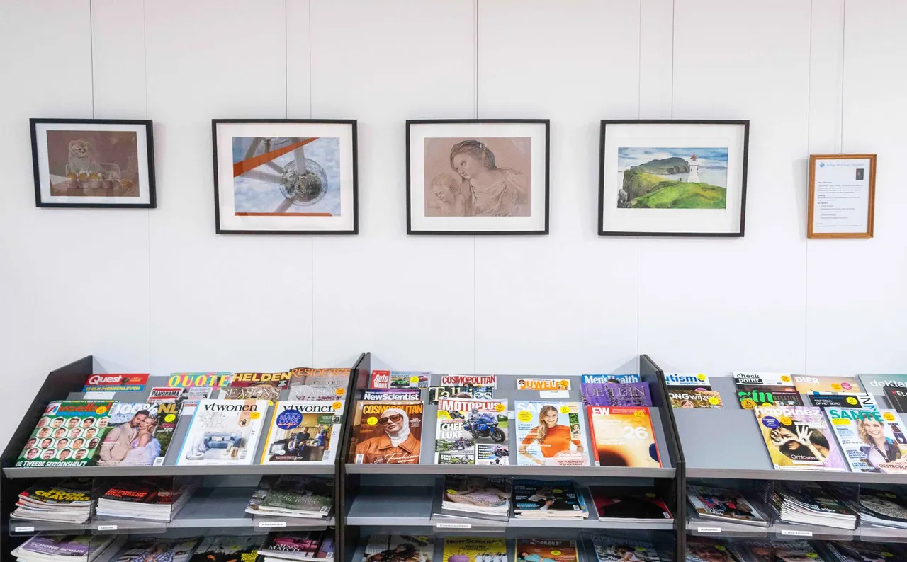 In de bibliotheek exposeert ons nieuwe lid Marja Delcroix met foto’s en pasteltekeningen. Daarnaast heeft ze een werk hangen wat we reversed schilderen kunnen noemen.