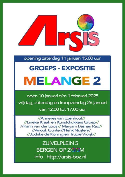 Zaterdagmiddag werd in de Arsis Galerie aan het zuivelplein in Bergen op Zoom de expositie MELANGE 2 geopend.