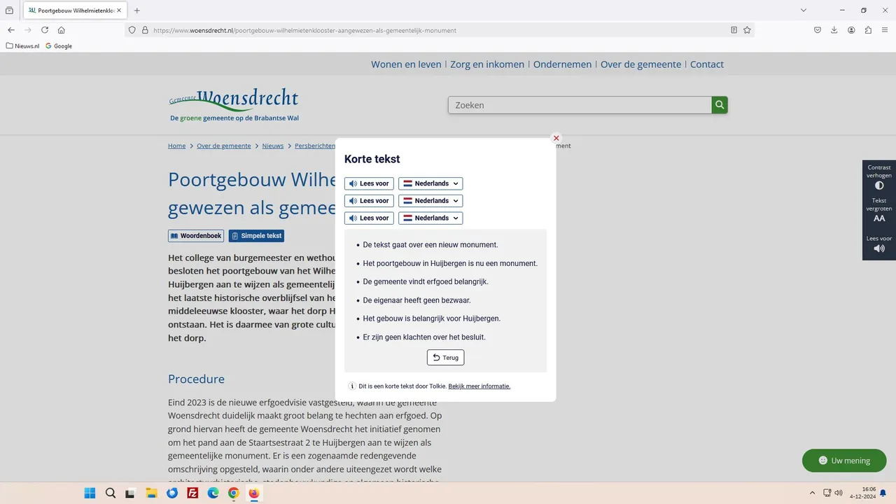 Onlangs heeft de gemeente Woensdrecht een leeshulp toegevoegd aan de website.