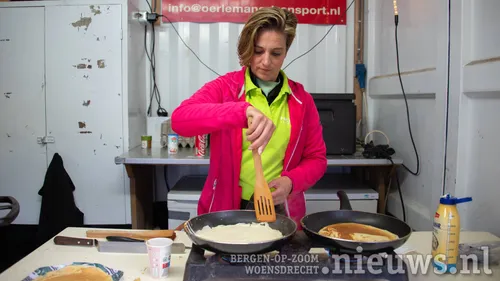 Maandagmorgen kwamen de deelnemers aan de Roparun door Hoogerheide waar ze op de kruising Zandfort/Scheldeweg warm worden onthaald met muziek, pannenkoeken en broodjes.