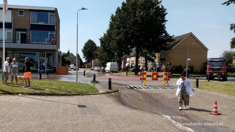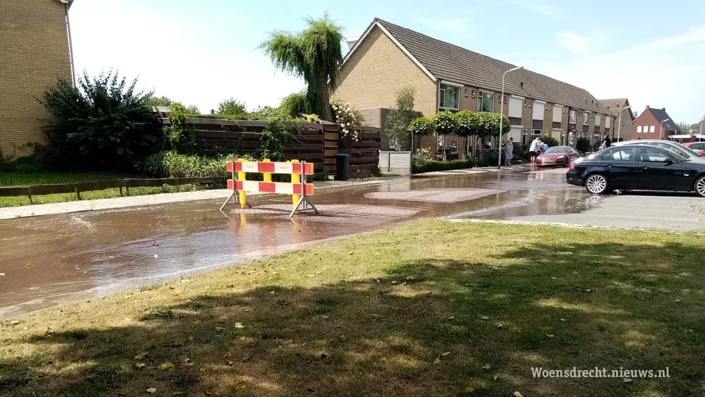 In de KLM laan stroomt het drinkwater over de straat nadat er in het begin van de middag een waterleiding is gesprongen. De oorzaak is vermoedelijk een zwakke plek in het waterleidingnet. Zo'n zwakke plek begeeft het op warme dagen als deze, doordat de waterdruk dan hoog is om aan de vraag te kunnen voldoen.