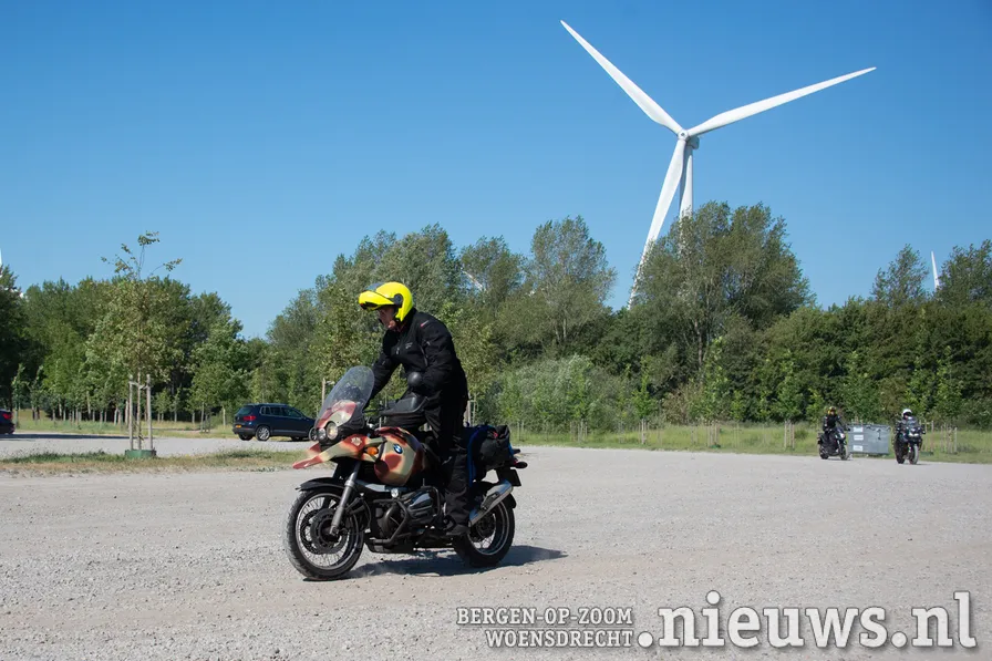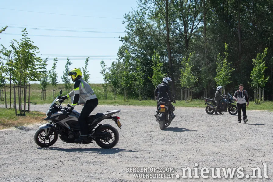 Nu iedereen theoretisch wist hoe het moest, was het tijd voor de praktijk en vertrok de groep vanaf het benzinestation richting Kreekraksluizen. Vlak bij de Kreekraksluizen is een groot parkeerterrein met gravel. Een prachtige plek om met een all-roadmotor oefeningen te doen.