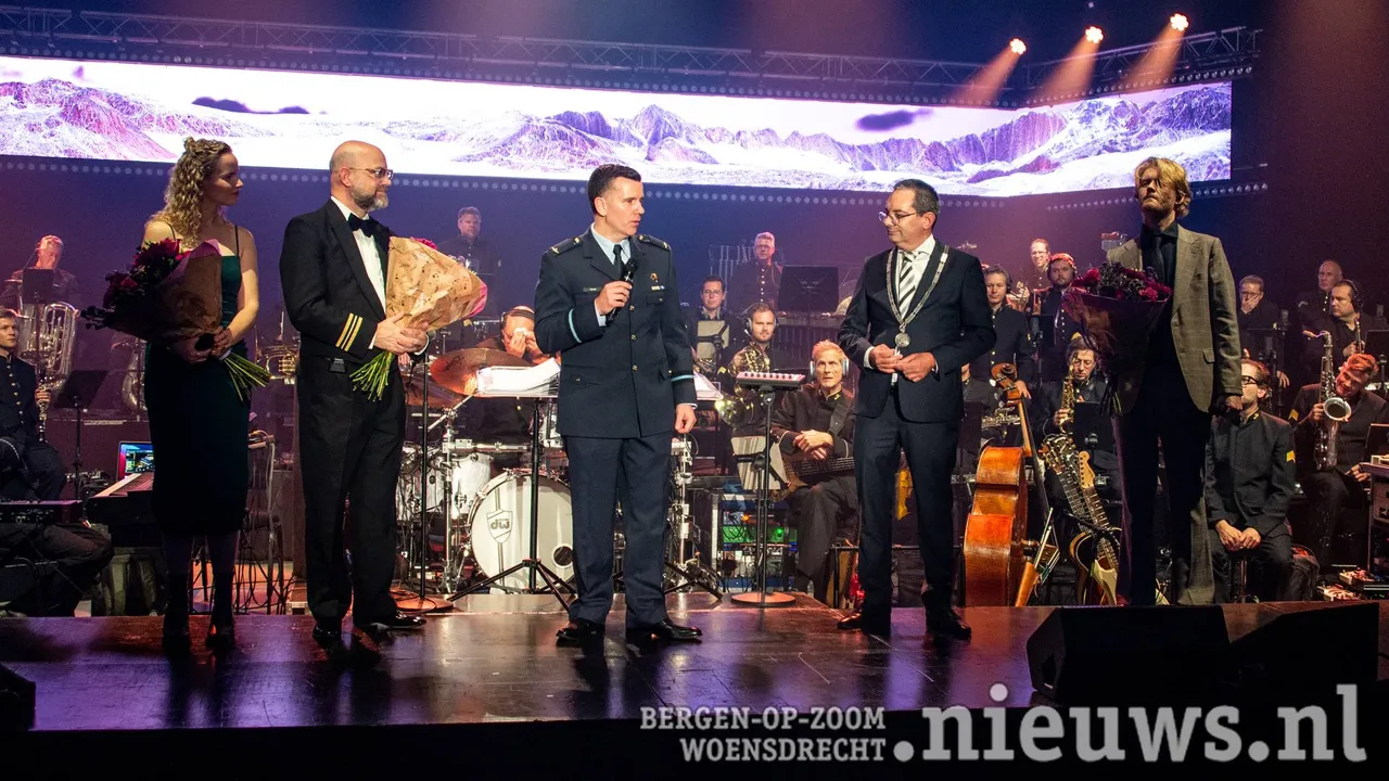 Na het nummer, 'Quarter Master' werden ook de technici bedankt zonder wie een optreden niet mogelijk zou zijn en na nog twee nummer was het afgelopen en kwam burgemeester Steven Adriaansen met bloemen het podium op om het orkest weer te bedanken voor een geweldig optreden