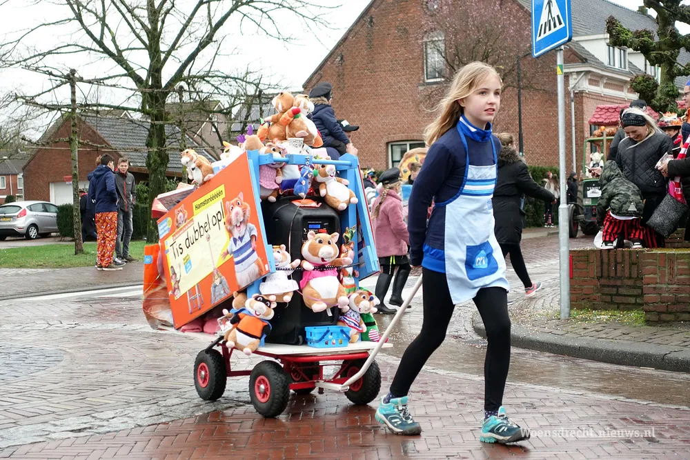 De carnavalsoptocht in 't Sanegat (Huijbergen) ging zondagmiddag gewoon door ondanks het onstuimige weer. Het was een kleurrijke en vrolijk stoet waar ondanks het weer veel volk op af kwam!