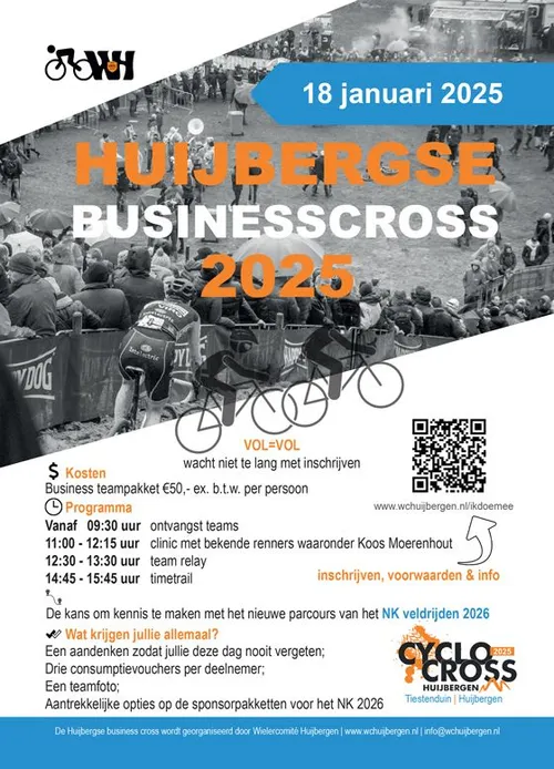 Vanaf 09:30 tot 15:45 uur vindt ook de Huijbergse Businesscross 2025 plaats waarbij de teams om 09:30 uur worden ontvangen. Van 11:00 tot 12:15 uur is er een clinic met bekende renners waaronder Koos Moerenhout en van 12:30 tot 13:30 uur een team relay. Het wordt afgesloten met een Timetrail van 14:45 tot 15:45 uur.