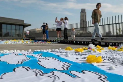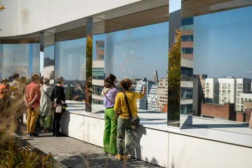 Het ModeMuseum stelt voor de eerste keer haar dak open met DROOMTUIN, een kunstwerk geïnspireerd door kindertekeningen. "Samen met kunstenaars Nel Maertens en Harald Ligtvoet droomt MoMu over weelderige tuinen en groene oases in de stad die voor iedereen toegankelijk zijn. De installatie bestaat uit gerecycleerde materialen en symboliseert de natuur in het najaar", aldus de organisatie.