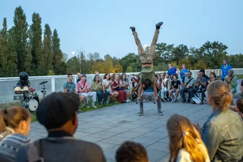 Tijdens de voorstelling van circusgezelschap Be Flat blijven de bezoekers veelal met de beide benen op de grond staan. Acrobaten Ward Mortier en Thomas Decaesstecker daarentegen niet. Zij sluipen over daken, klimmen in bomen en springen in de lucht. De straten van Antwerpen lijken voor hen één grote speeltuin, waarbij niet alleen gebouwen, maar ook het publiek wordt bespeeld.