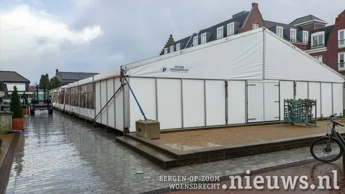 Woensdagmorgen is weer begonnen met de opbouw van de ijsbaan op het Ouwe Raedthuysplein in Hoogerheide.