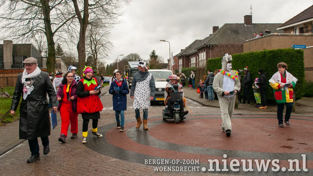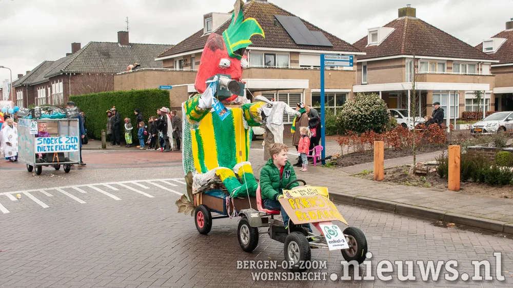 De optocht vertrok wel een half uurtje eerder, om het mindere weer van die middag voor te zijn. De stoet trok vanuit Woensdrecht door de Dorpstraat, de Nieuweweg in Hoogerheide en vervolgens door de Raadhuisstraat. Ter hoogte van het Ouwe Raedthuysplein werd de stoet gefilmd door Streekomroep Zuidwest TV. 's middags was de prijsuitreiking in MFC Kloosterhof.