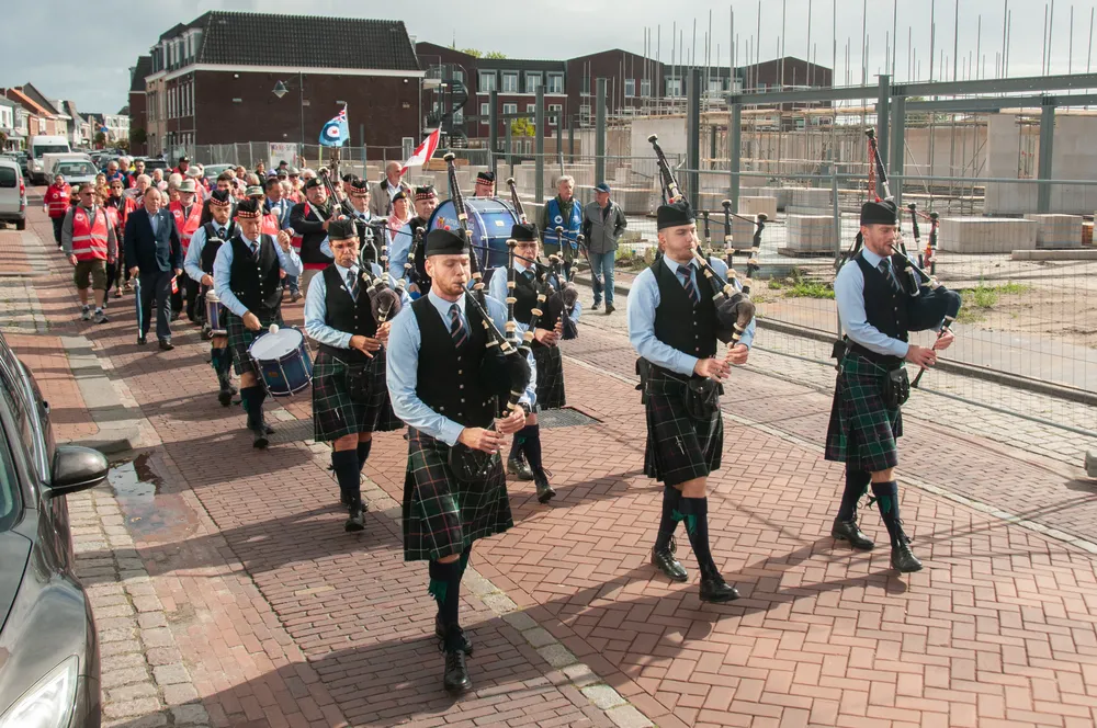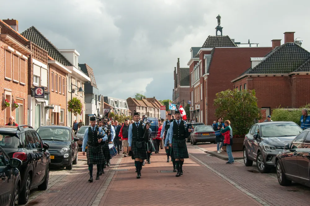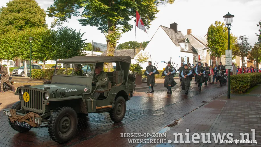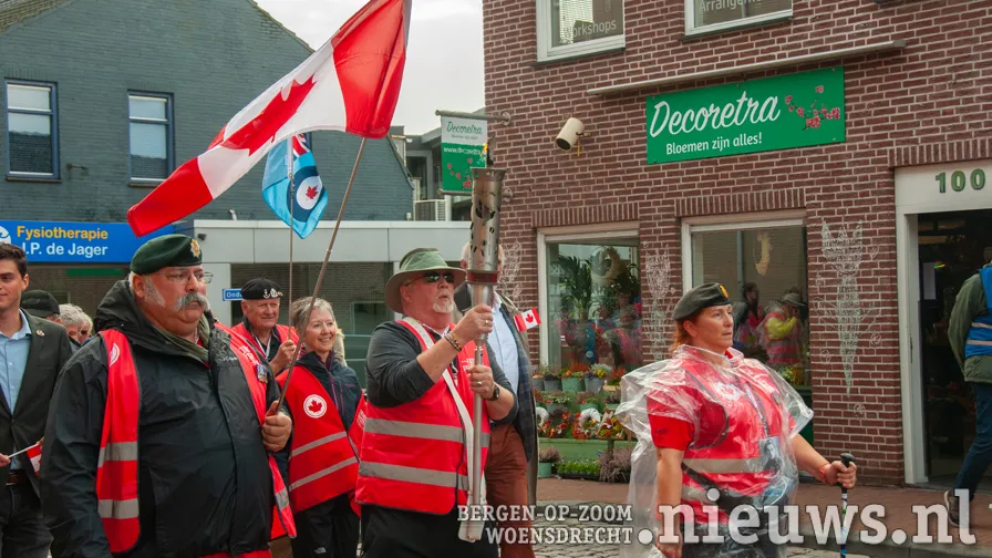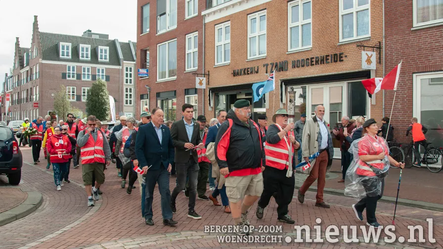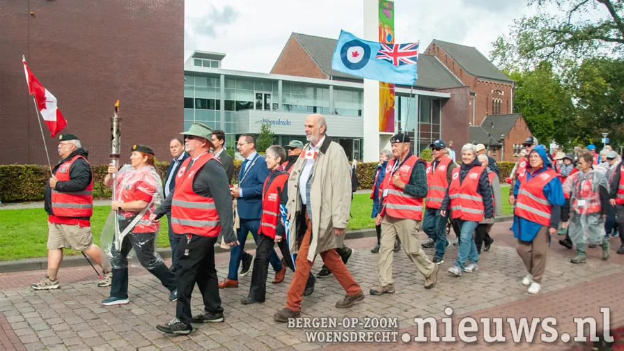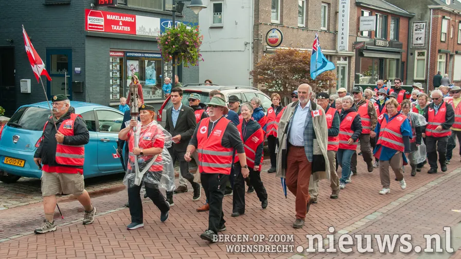 The procession walked through Raadhuisstraat, to the roundabout with the silhouettes of the Canadian soldiers. They then followed the Nieuweweg to the war memorial in Woensdrecht.