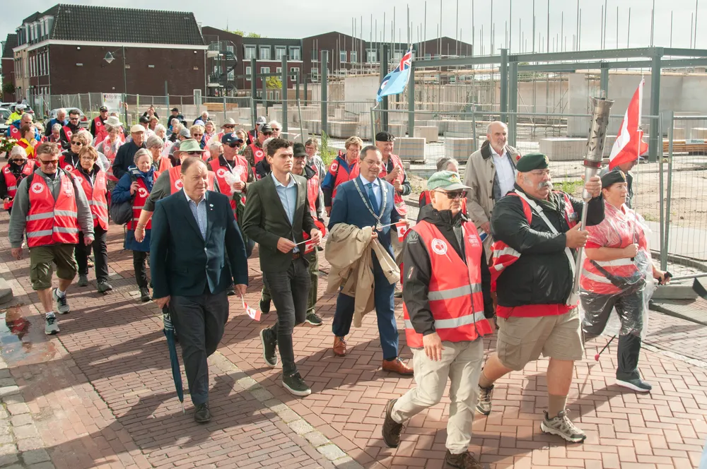 During a visit to Het Loo Palace in Apeldoorn, the Canadian Remembrance Torch was handed over by the oldest participant (84 years old) to Princess Margriet, who in turn handed it over to the youngest participant (26 years old) in order to symbolize the transfer of the commemoration to the younger generation.