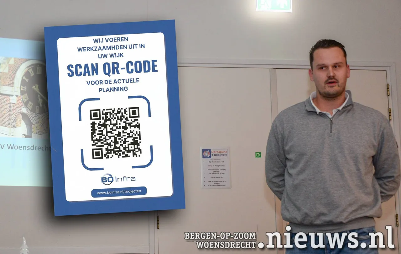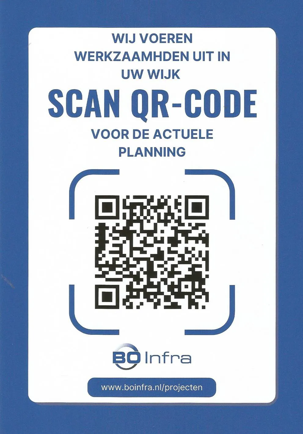 BO Infra had gezorgd voor flyers met een QR code naar de website waar de planning en up to date informatie over de werkzaamheden is te vinden, inclusief de contactadressen van de verantwoordelijke personen zodat problemen bij de juiste personen gemeld kunnen worden.