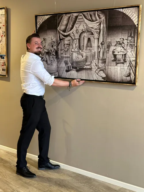 Met extreem gedetailleerde lijnen en sterk contrast tekent hij over deze oude documenten heen. De onderwerpen zijn persoonlijk en confronterend. Alles krijgt een nieuwe lading door de combinatie van deze paperassen en tekeningen. Zijn werk is bedoeld om te prikkelen en je aan het denken te zetten. Klassieke symboliek wordt in zijn werk gecombineerd met moderne composities.