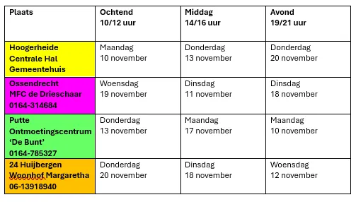 De BWI organiseert bijvoorbeeld workshops, cursussen en ontmoetingen met andere mantelzorgers. Daarnaast kunnen zij regelen dat de zorg even wordt overgenomen door een zorgvrijwilliger, zodat de mantelzorger zelf een keer weg kan. Meer informatie bij het steunpunt mantelzorg van de Brede Welzijnsinstelling Woensdrecht (BWI) .