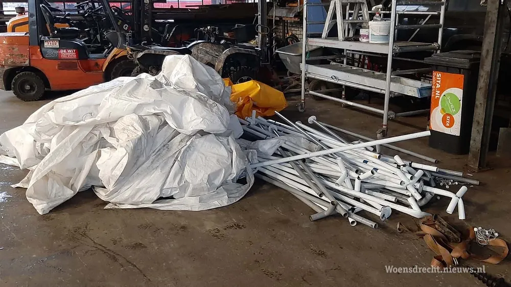 Ossendrechtenaar Paul Jaspers zag de tent van de coronateststraat een vlucht nemen terwijl hij zijn hond uitliet. "Hij heeft een tent vier weilanden verderop gevonden", Zegt De Lange. Ook wijkagent Frank van der Molen kwam helpen met het opruimen van de ravage.