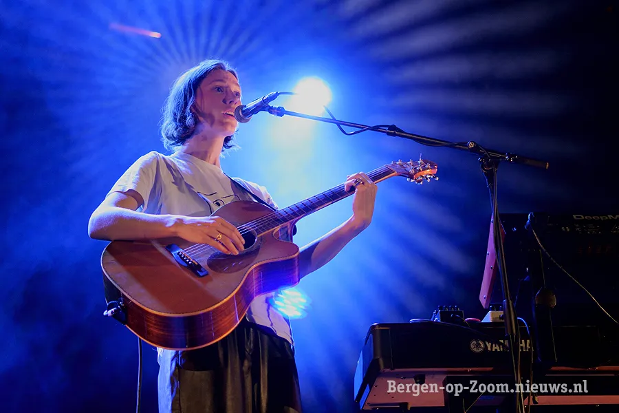 Voordat Lucky Fonz III zijn Bergse debuut maakt, staat Eva van Manen op het podium. De Amsterdamse is de vroegere buurvrouw van Lucky, zo blijkt later. Maar vanavond is ze bovenal singer-songwriter die het publiek gezongen en gesproken poëzie voordraagt.
