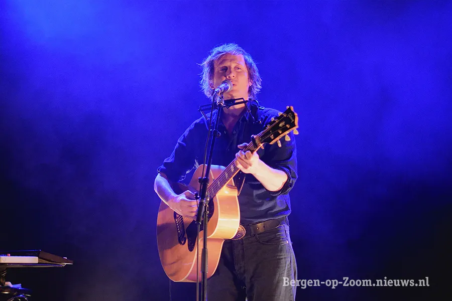 Waar Gebouw-T gisteravond met DeWolff nog een rauwe rocktempel was, voelt de zaal vanavond als een knusse woonkamer, waarin rond de klok van tien, Lucky thuiskomt. Geen strak theaterprogramma, maar één op ééntjes, anekdotes en hersenspinsels van de 41-jarige Amsterdamse vrijdenker. "Komen jullie verhaal halen voor de teksten van mijn nieuwe album Hemellichamen? Of willen jullie je geld terug?" Heel even schept hij een parallel universum waarin de artiest tegenover een zaal mensen die verhaal komt halen staat. Maar die nachtmerrie is het niet voor Lucky en het Bergse volk, eerder een mooie droom die uitkomt.
