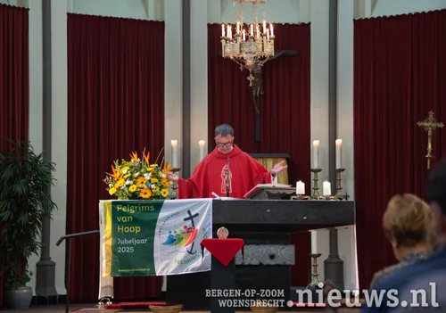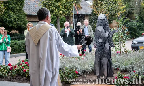 Na de onthulling werd het beeld door pastoor Paul Verbeek, pastoor van de Lieve Vrouwe parochie in Bergen op Zoom en van parochie De Bron in Woensdrecht, gezegend.