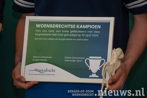 Donderdagmorgen werd in het gemeentehuis in Hoogerheide de 16-jarige Tom van Oers gehuldigd voor zijn Nederlands kampioenschap A in de 2e jeugdklasse tafeltennis.